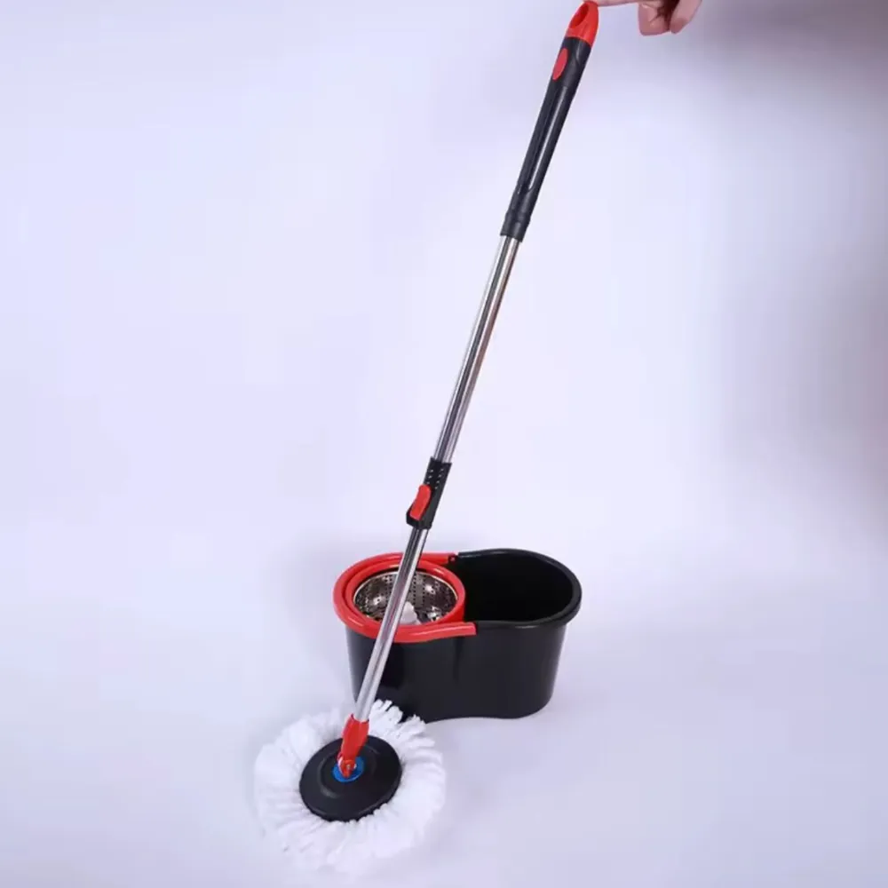 Descripción: Práctico trapeador giratorio que le permitirá mantener su hogar o sitio de trabajo impecable de manera fácil y eficiente. Cuenta con un mango plástico resistente y ajustable que se adapta a la altura que usted desee, permitiéndole una experiencia cómoda al momento de usar, hecho con microfibra que le permite retirar el polvo del suelo y absorbe de manera eficiente al momento de limpiar líquidos, adicional cuenta con su cubeta con su propio escurridor facilitando escurrir el trapeador sin contacto directo con las fibras y eliminar de manera eficiente el exceso de humedad en él. De diseño ergonómico y delgado para alcanzar esos rincones difíciles sin mayor esfuerzo. Cuenta con un repuesto para garantizar siempre tener su trapeador limpio mientras el otro lampazo se lava o se seca.